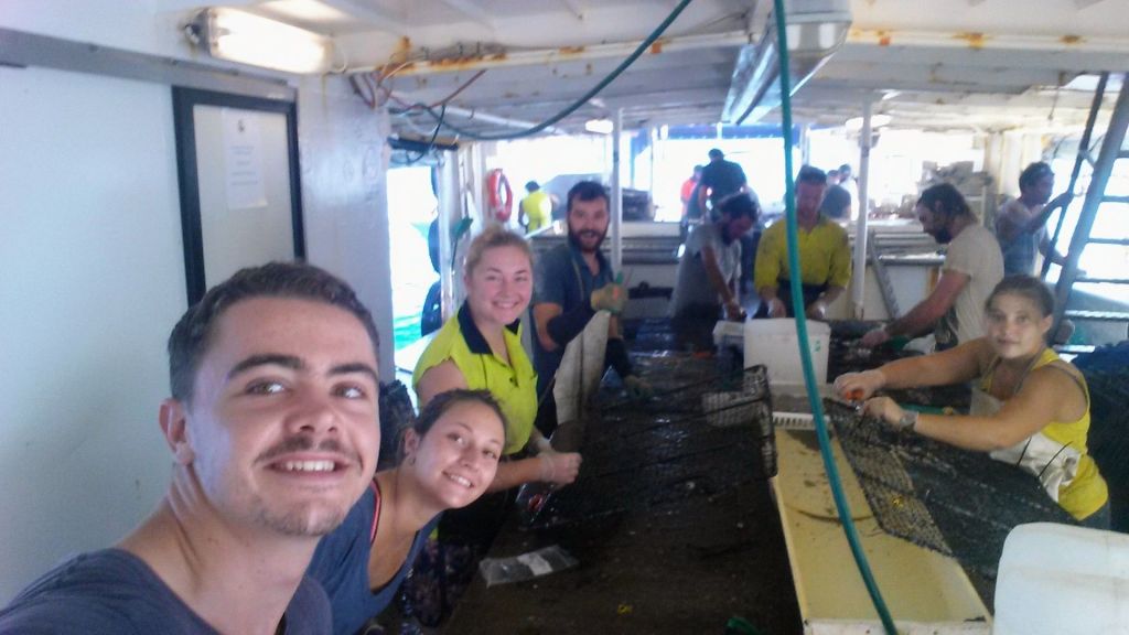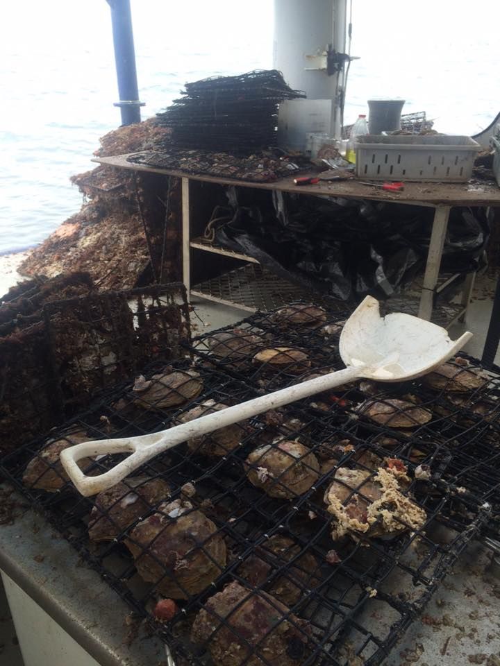 When the hatchery slowed down, I took a job as a deckhand on the mother ship. The work was tough 12 days on, three days off but I quickly bonded with my crewmates. We spent our days pulling up oyster panels, cleaning them.