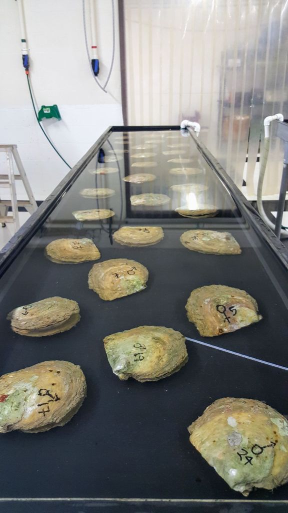 Spawning season was an exciting and exhausting time. Diana and I would board the tender to collect broodstock oysters from the sea farm. We selected the healthiest oysters by examining the females’ gonads and the fullness of the males’ sperm pockets.
