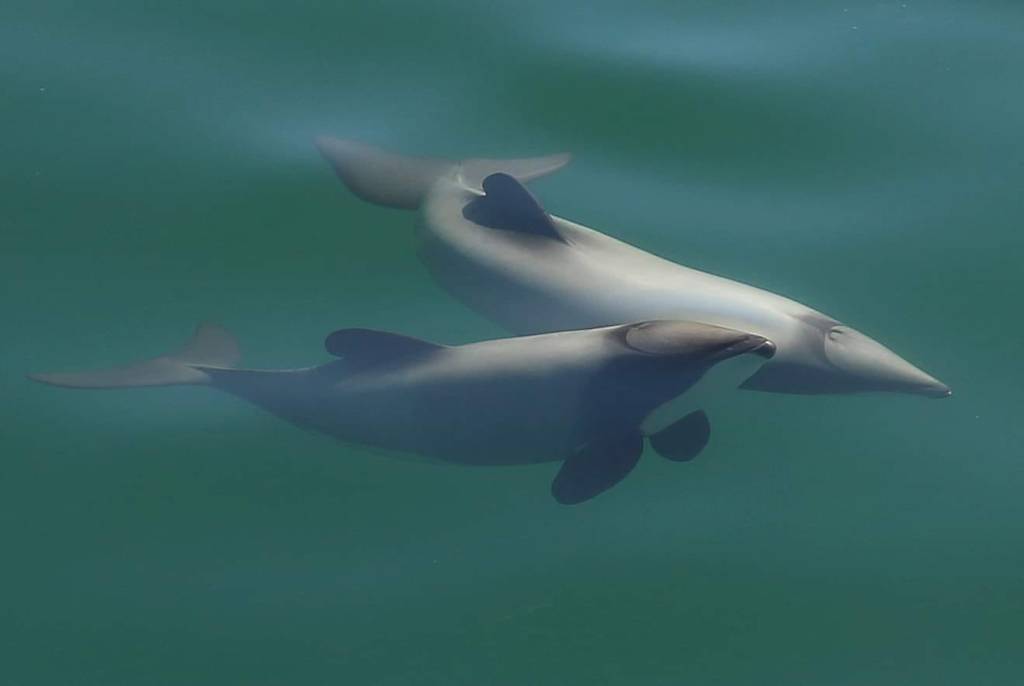 Māui and Hector’s dolphins are the smallest dolphins in the world, found only in New Zealand’s waters. Their rounded dorsal fins, often likened to Mickey Mouse ears, and their striking gray coloring set them apart from other dolphins. Christine fondly describes newborn calves as being no bigger than a rugby ball, making them a true national treasure.